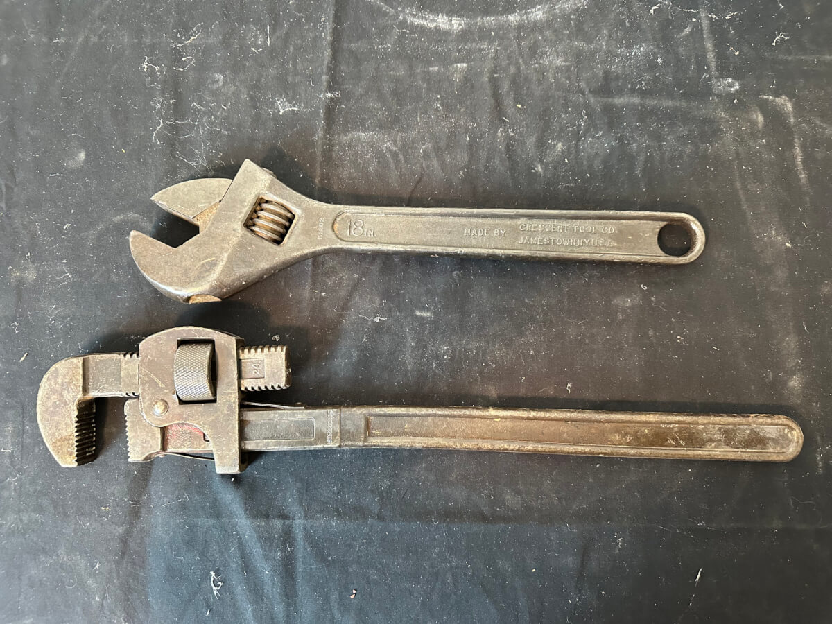 | 169 | 24″ Simmons Pipe Wrench & 18″ Crescent Wrench |