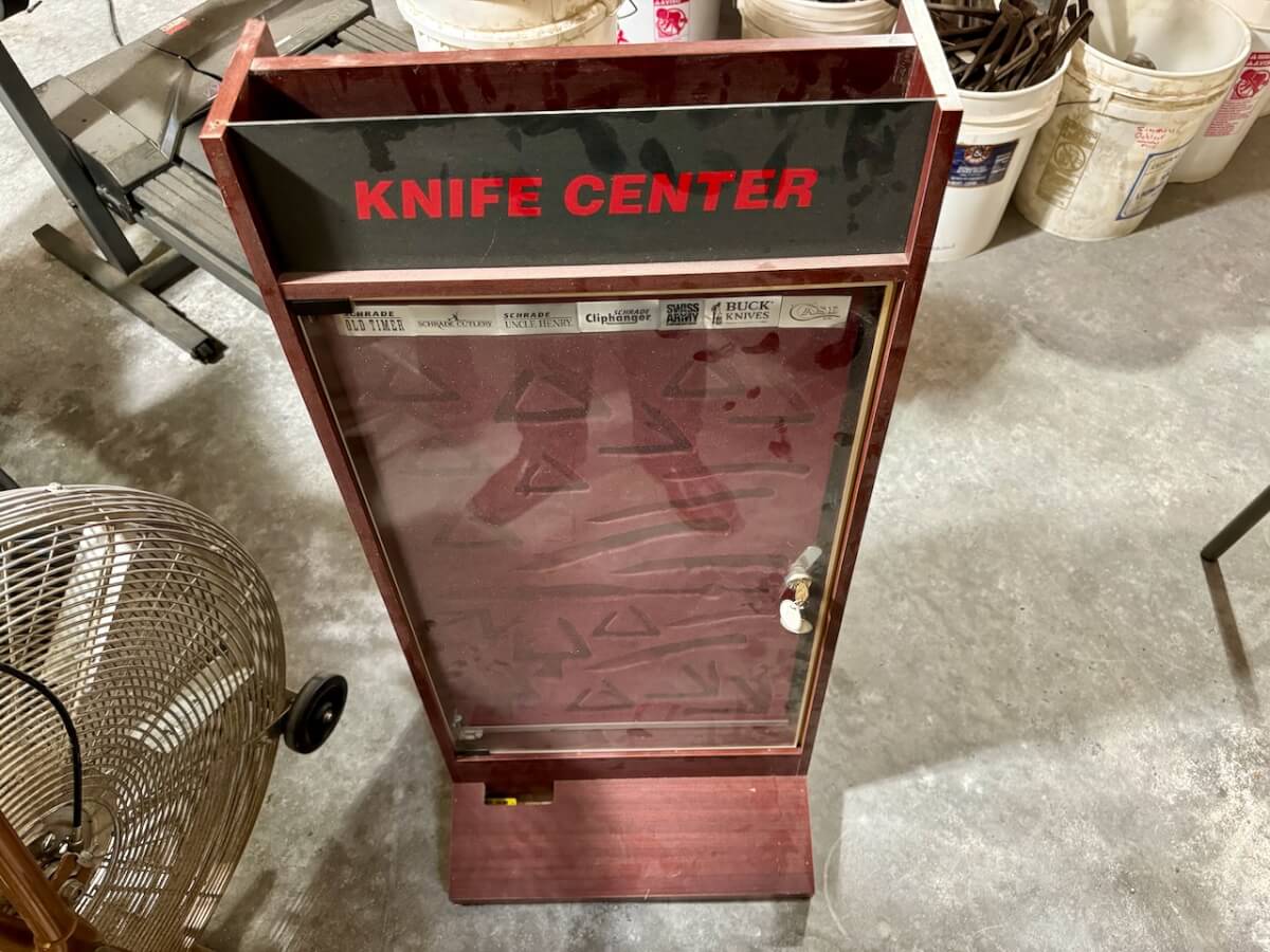 Display Cases & Boards: Knife display case – 2 Freud router bit display cases – 3 Glass Display Case – Small tabletop display case – Jewelry display case – Display case table – Winchester ammo display case – 3 display pegboards w/hooks – 4 Indestro peg board panels w/hooks