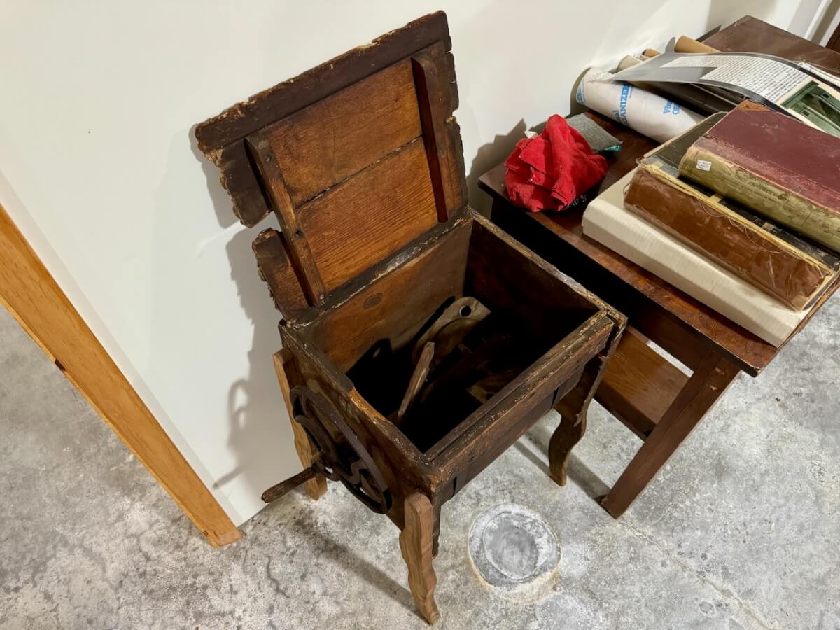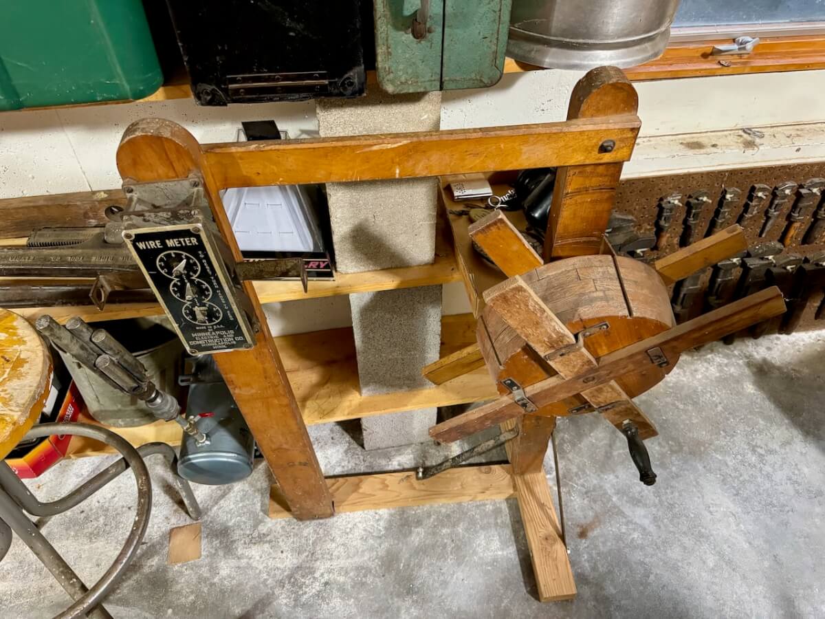 Miscellaneous: Dietz Company calendar phone dex – Cigarette lighters – General mini mechanic jack – Mutual Aid memo storage folder for paperwork – Australia special forces beret pin – Hotpoint kitchen plans portfolio – Newton Ice Company valuable paper holder – Newton Midland Bank check blanks – Newton Ladies Auxiliary stamp sealer – Notary Republic stamp sealer – Millison Otto Weiss Stamper – Ration sack – 1899 Sattley Mfg Co “Riding & Walking Plows” notebook – Anchor Oil playing cards – Antique wooden washing machine – Telegraph codes – Mainline sounder – White Eagle Mobile Gas puzzle – Winchester envelopes – Marlin envelopes – Klassen Bros Whitewater thermometer – Ford Time magazines (Newton) – Jobs Daughter book