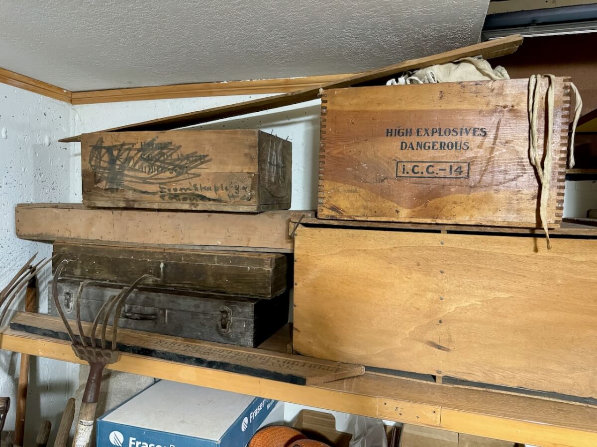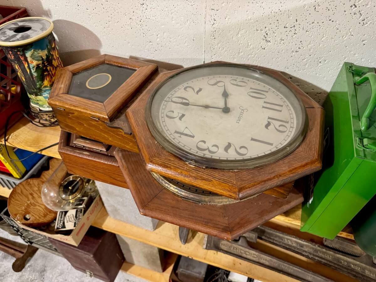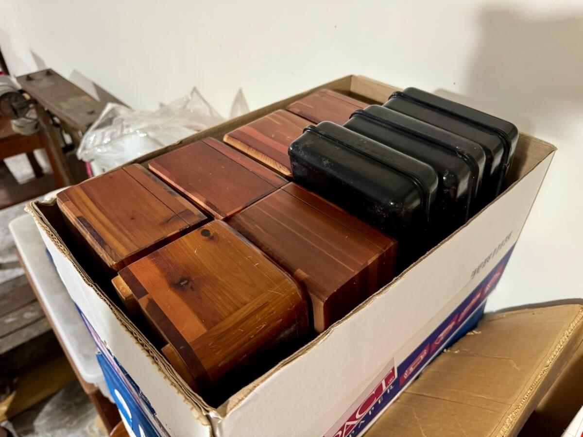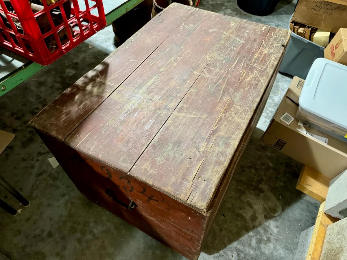 Wooden Boxes: Winchester Box – Keen Kutter Box – 2 Shapleigh Boxes – Dupont Explosives Box – Pepsi Crate – Keen Kutter Tool Box – Newton Sunflower Hatchery Box – Newton Dairy Co Dover Sad Iron Box filled w/dated nails – 6 Cedar Boxes – Newton L Swartz Co Board – Bethel College Board – Shamrock Milk Crate – Holiday Assortment Wood Box