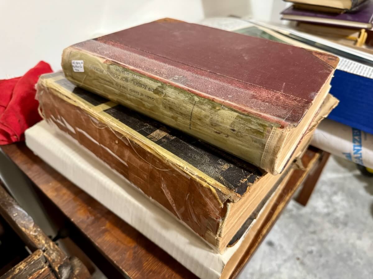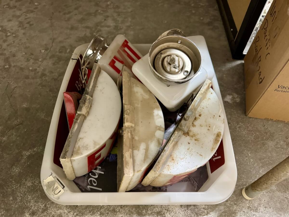 Miscellaneous: Ford records and films – Standard oil candles – Sleigh bells – Newton Lindley Hall basketball court board – Framed Newton advertising – Miscellaneous tools – Rope maker –Wooden wire meter – Kelly cannister – Goodyear cannister – Exit door signs – Keen Kutter match holders – Tuffy screwdrivers – Fire nozzle – 2 Brass Ford tire hand pumps – Keen Kutter nail apron – Diamond Edge nail apron – Shapleigh seed sower – Bale hook – Buggie wagon seat
