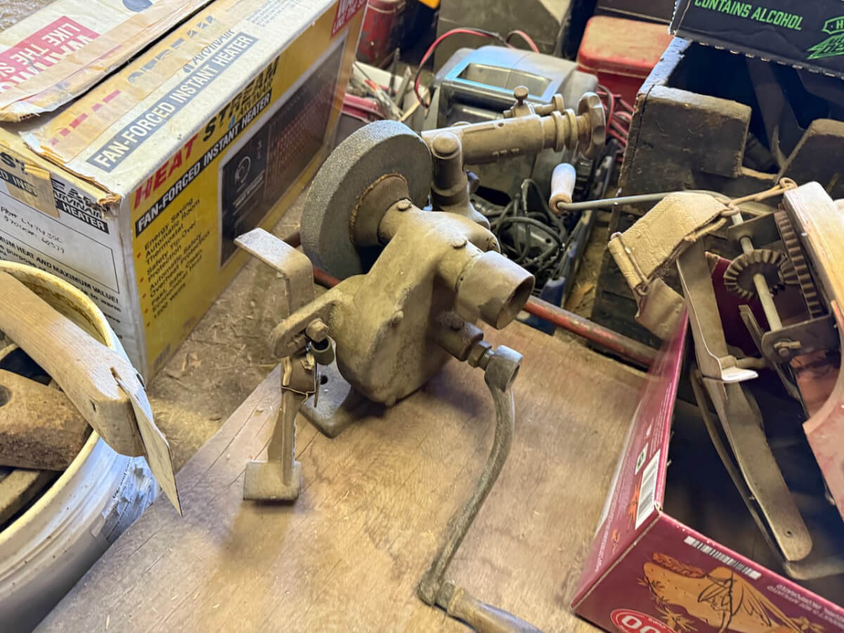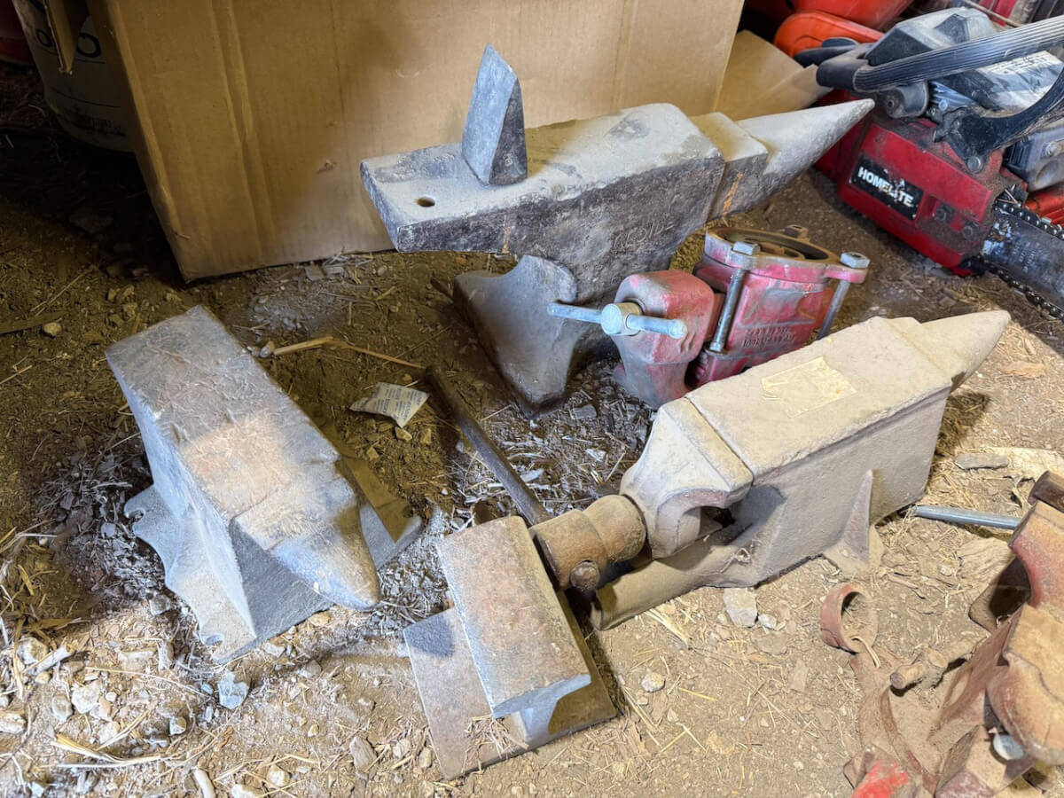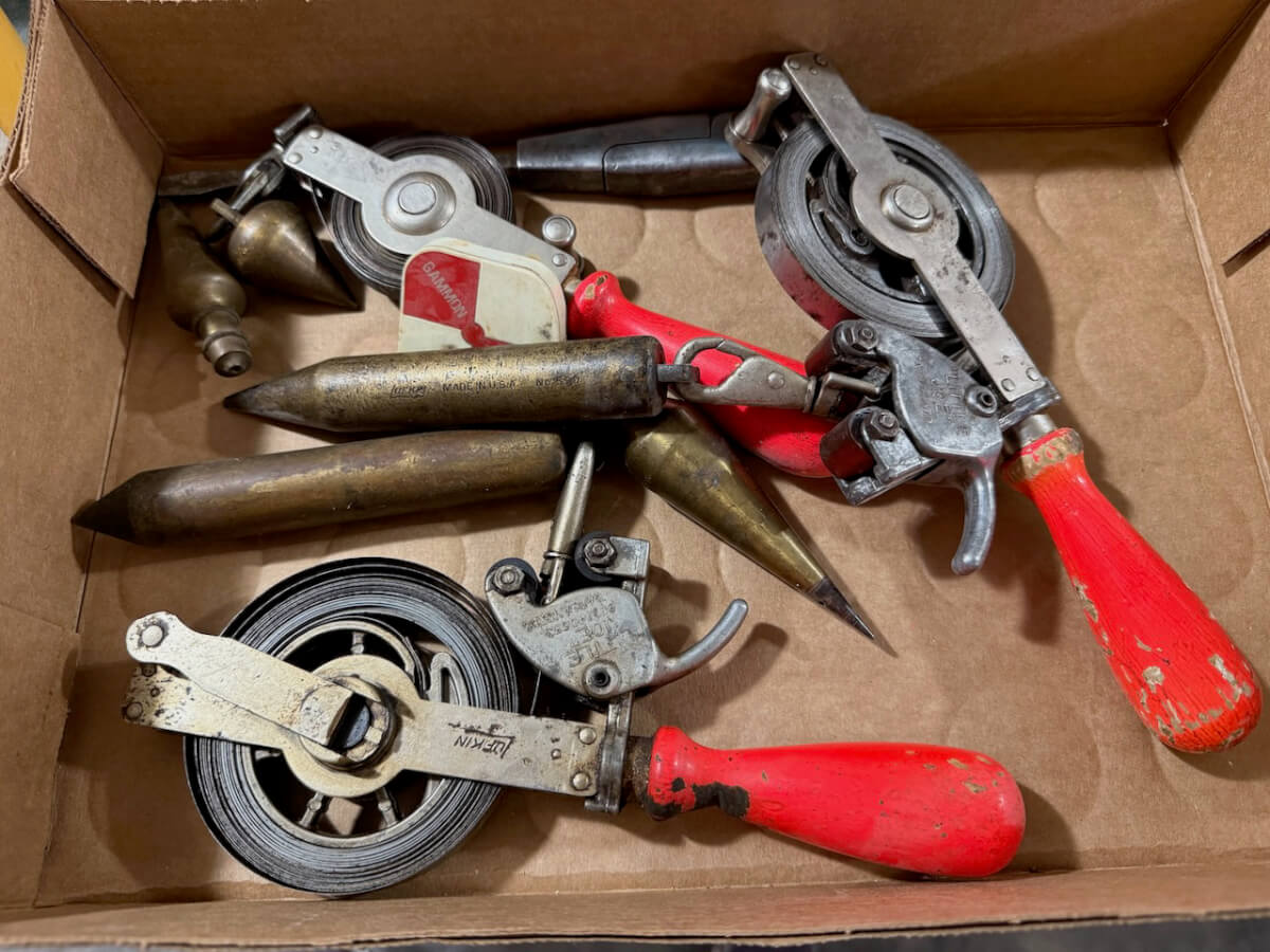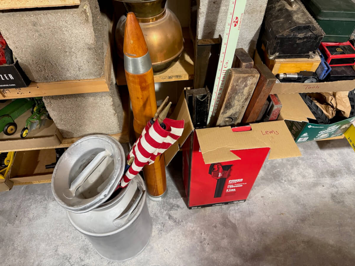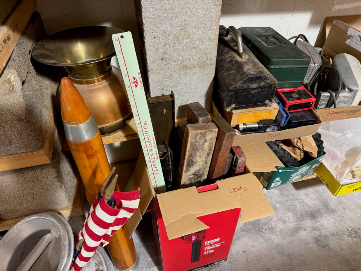 Tools & Miscellaneous: Small Planes. Plumb Bobs. Tap & Die. Sharpening Stones. Steering Wheel Knobs. Bicycle Bells. Blue Grass Catalogs. Square Nails. Sockets. Levels. Dated Nails. Surveyor Scope. Scale Weights. Hay Hook. Shapleigh Scythe Stone. Stanley Folding Rule. Leather Working Tools. Simmon, Stanley, Keen Kutter Tools. Advertising – Stanley. Shapleigh. Diamond Edge. 3 Wooden Nail Kegs. Numerous RR Hinges – ATSF. Hardware Organizer. Numerous Tool Boxes. Two Plastic Board Tool Holders. Gauges. Antique Air Pumps. Grinder. Old Water Pump. Wooden Tool Tray. Many Miscellaneous Tools. Pumps. Electric Fence Materials. Winches. Shelf & Wall Hangers. Router. Home Lite Chainsaw. Chainsaw Case. Stihl Chainsaw. Concrete Tools. Chainsaw Chains & Bars. Thunder Gun Power Washer. Jig Saw. Soldering Kit. Electric Heater. Paint Sprayer Kit. Collectible Jack. Toolbox Full of Sockets. Toolbox Full of Screwdrivers. Toolbox Full of Wrenches, Screwballs. Toolbox Full of Pliers, Vise Grips, Crescents. Box of Miscellaneous Tools. 3 Tool Belts w/Tools. Crate Full of Miscellaneous Tools. Toolbox Full of Hand Saws. Lots of Miscellaneous Wrenches & Sockets. Anvil