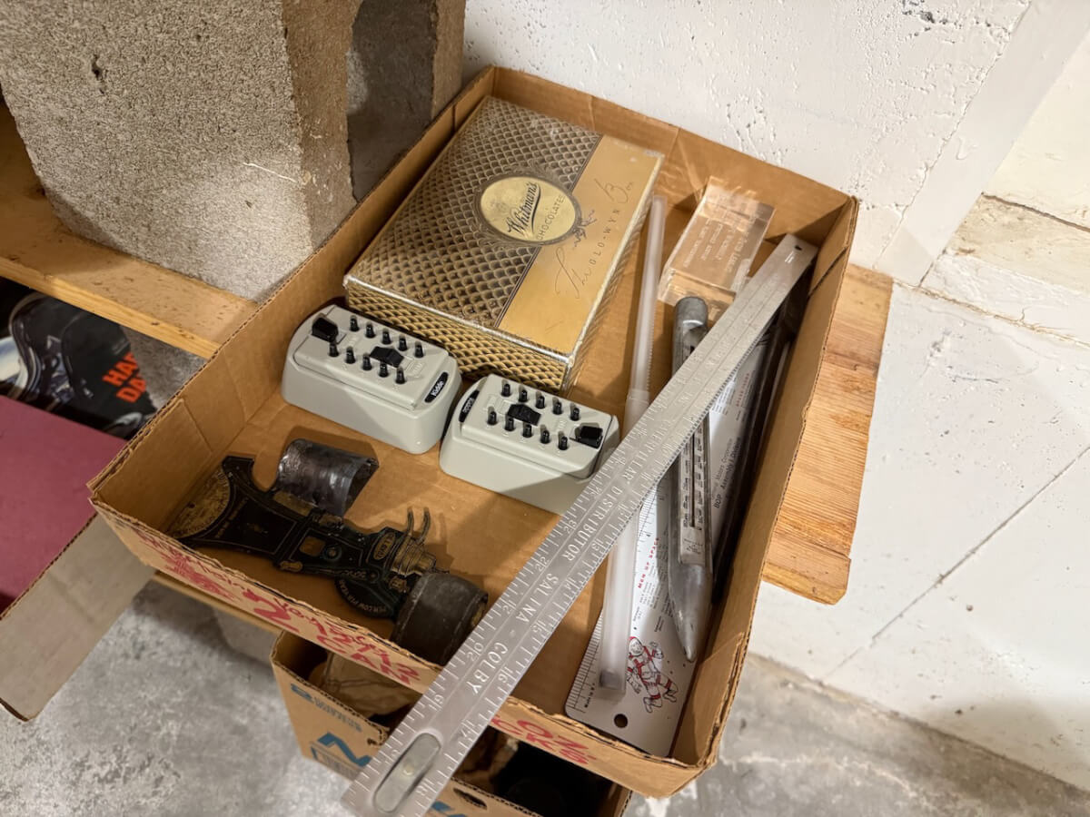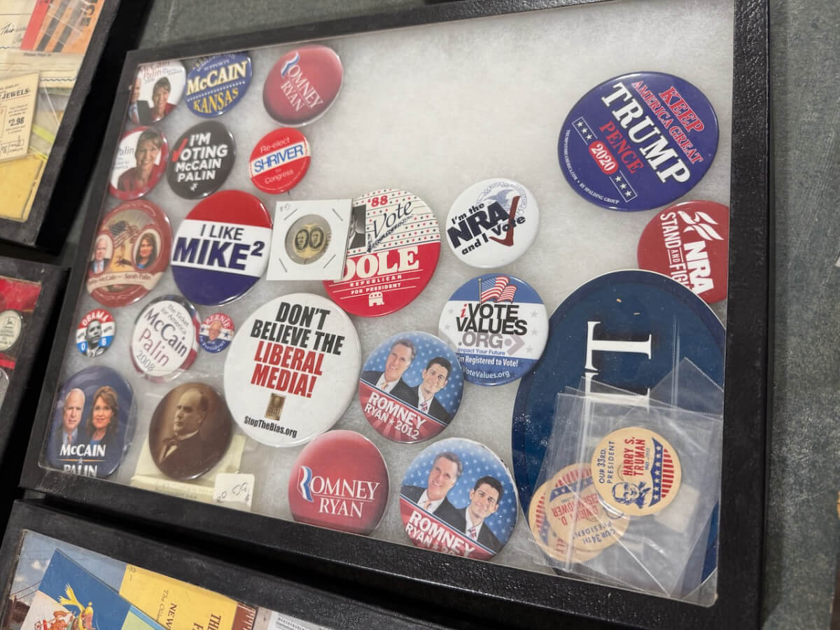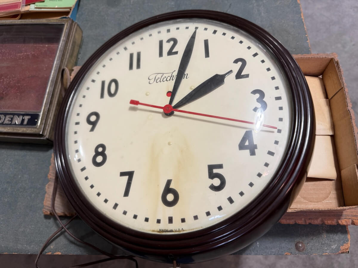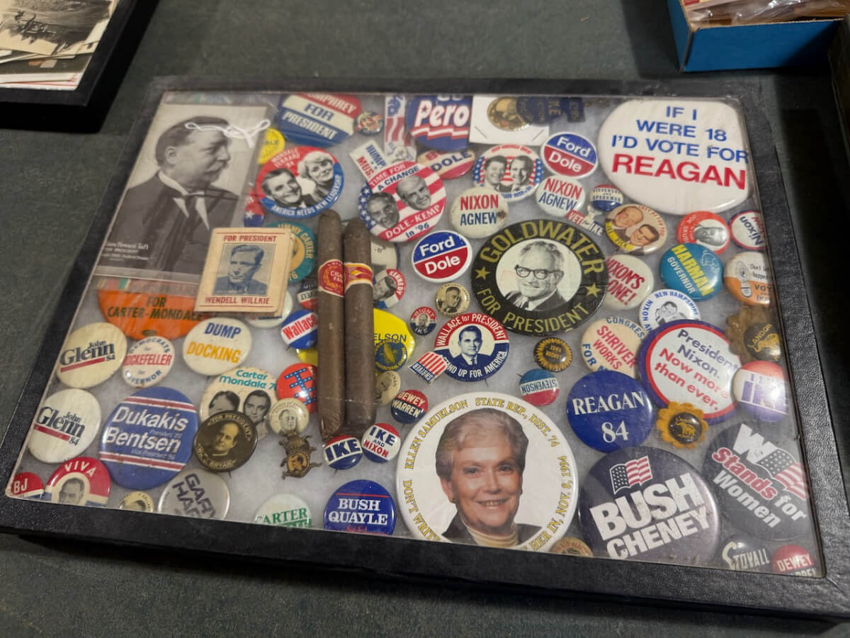 Miscellaneous: Antique Black Chalk Board. Two Flags & Two Flag Pole Holders. Old Phones. Miscellaneous Tins. Newton License Plates. Collectible Political Buttons. Guitar Tuner. Music Pitch Instrument. Henry George Cigar Box. Vintage Fire Extinguisher Ball Holders. Shapleigh Diamond Apron. Drive-in Theater Speakers. Transistor Radio. Telechron School Clock. Independent Metal Box. Hillsboro Thermometer. Cannonball. Christmas Letter Blocks. Christmas Angel. Oklahoma Collector Plates. Prince Albert Tins. Vornado Fan. Halstead Hospital Metal Plate. Lots of Miscellaneous Wooden Boxes. 2 Key Safes. Wilbur Walker Adding Machine. Vintage Glass Photo Slides. Dozens of Flour Sacks. Table Games. 2 New Galileo Thermometers. Various Sizes of Carrying Cases. John Deere Tractor Umbrella.