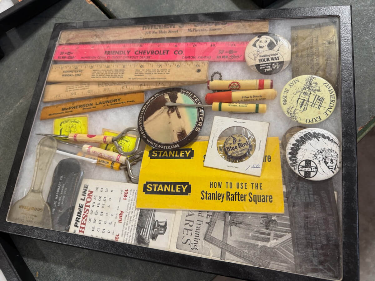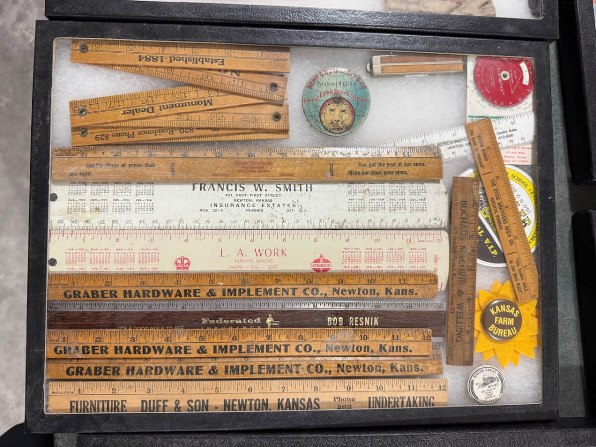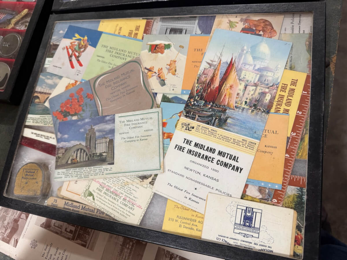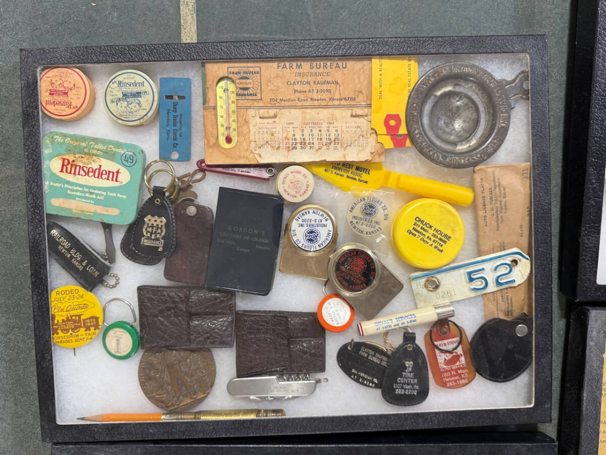 100’s of Paper Goods & Advertising: Winchester. Remington. Old Newton Business Receipts. Santa Fe. 1940s & 50s Newton HS Sports Schedules. Hardware Letter Head – Wyeth. Richards & Conover. Hibberd. Townley. Harvey County Teacher Contract. Frye Hardware. Cancelled Checks – Newton. Whitewater. Elbin. Newton Sports Programs. Railroad. Newton Business Cards & Calendars. Tools. Fred Harvey – Menu. Postcards. Farm Equipment Advertising – John Deere. Hesston. McCormick. Farmall. Hutchinson. Newton. White Water. Elbing. Burns. Winchester Wooden Sign. Shapleigh Envelopes. Skelly Oil Co Stock Yards Certificate. Wichita Union Stock Yards Certificate. Advertising Buttons. Delaval Match Holder. Pete Rose Wichita Eagle Newspaper. 1940s Wallace Farmer Magazines. Old Newton, KS Newspapers. Kansas Historical Papers. Old Newton Directories.