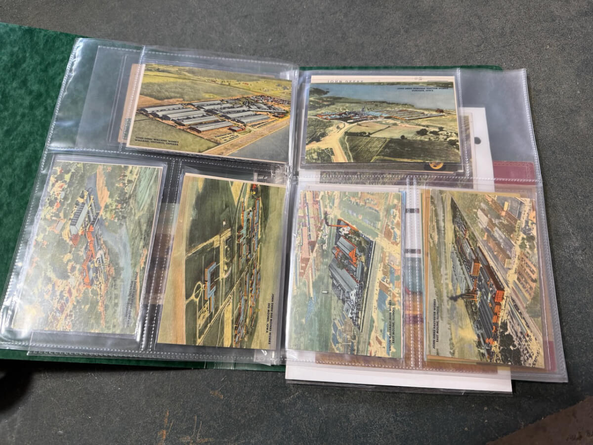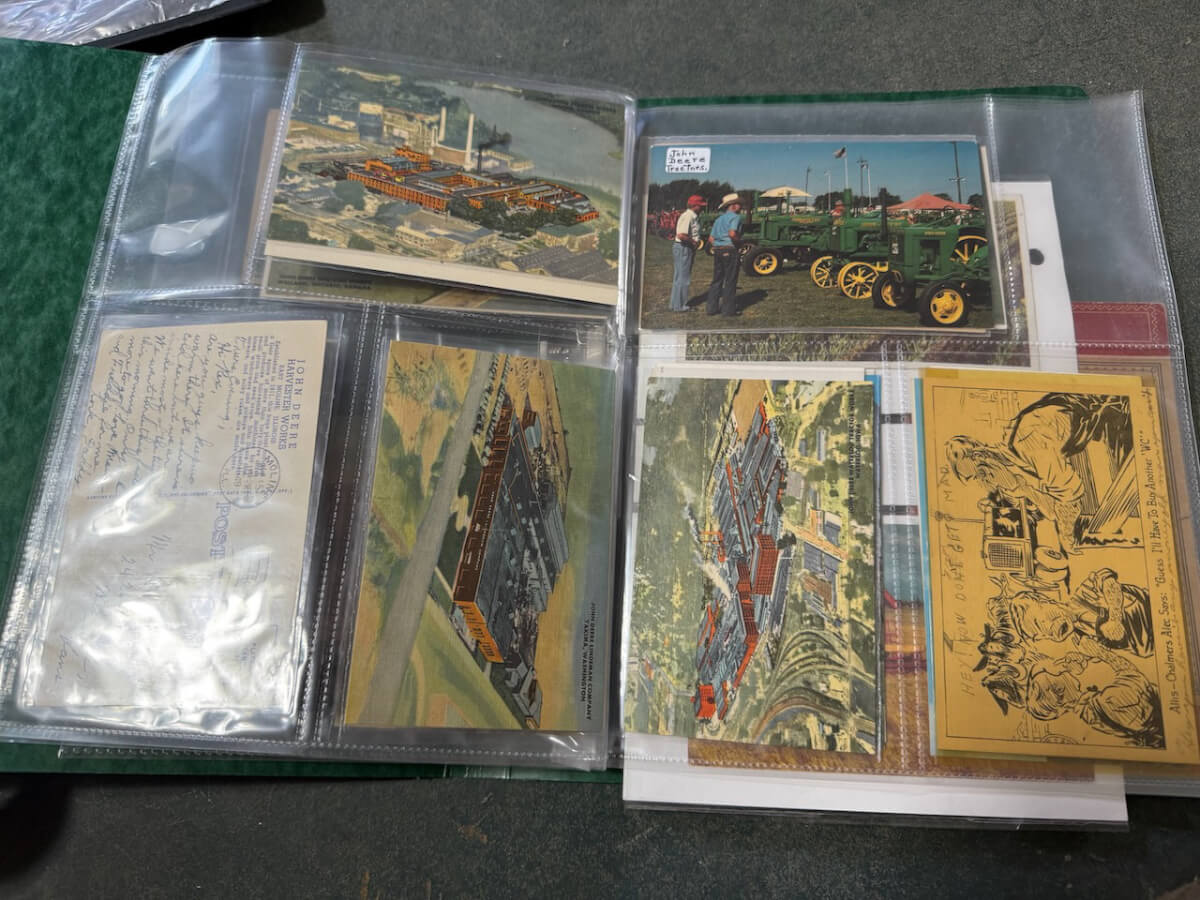 Postcards: Vintage Album including Birthday. Christmas. Easter. Numerous Towns. John Deere. Numerous Miscellaneous Post Cards. State Postcards.