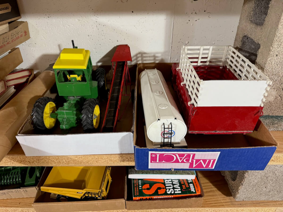Toys: Erector Set. Handy Andy Box. American Tools & Chest. Pedal Tractor Wheels. John Deere Toy Tractors. Hesston Toy Tractor. Toy Farm Implements. Toy Ford Pickup. Toy Ford Tractor.