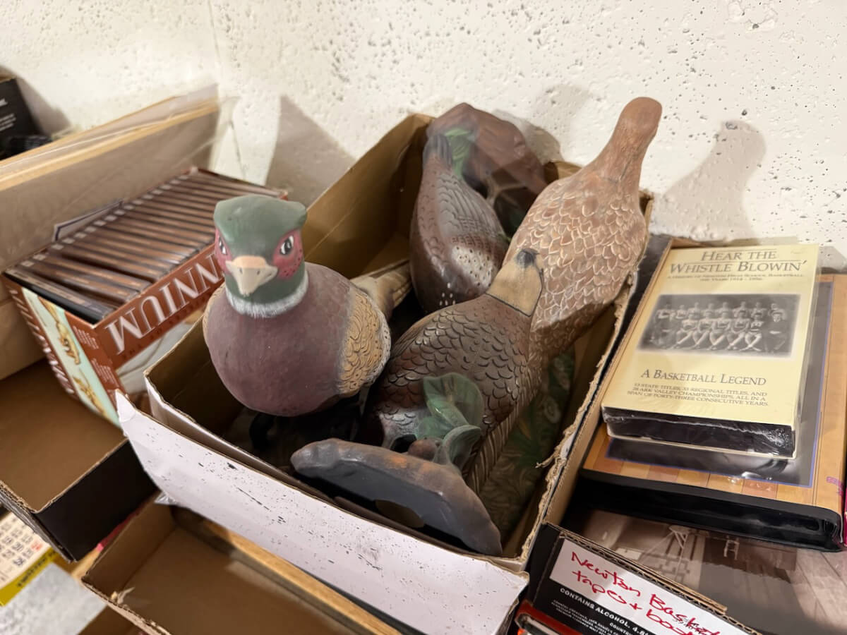 Miscellaneous: Gun Safe. Framed Pegboards. Glass Display Case. Metal Display & Storage Shelves. Numerous Collection New Baseball Caps. Wire Egg Baskets. Case of Camel Match Books. Large Ammo Box. Ceramic Pheasant and Quail Statue. Intel Vision Player and Game. Bradley’s Chart Printing Outfit Case Hoover Brothers KCMO. Small Hand-Held Cross Bow. Chicken Waterer. Antique Fire Blanket Box. Fire Blanket Boxes one with Blanket. Practice Roping Steers. Hub Caps. Pop Bottle Crates (Pepsi, Salina Bottling Co, Dr. Depper, Coca-Cola). Small Safety Service Cabinet. Denver Bronco Canopy. Barrel Rings. Small Wire Display Rack. First Aid Cabinet. Rain Train. Antique Wooden Trunk. Iron Wheels. Iron Axel. Phillips 5 Gallon Gas Can. Wings Mineral 5 Gallon Gas Can. Home Made Sled. Klix Shortening Tin. Hog Water Tin Lids. Hane. 2 Measuring Wheels. Bell System Canvas Bag. Animal Traps. Gopher Traps. Numerous Glass Insulators. Milk Bottles and Calf Feeding Bottles. Fire Alarm Boxes & Fire Bells. Coffee & Tobacco Tins.