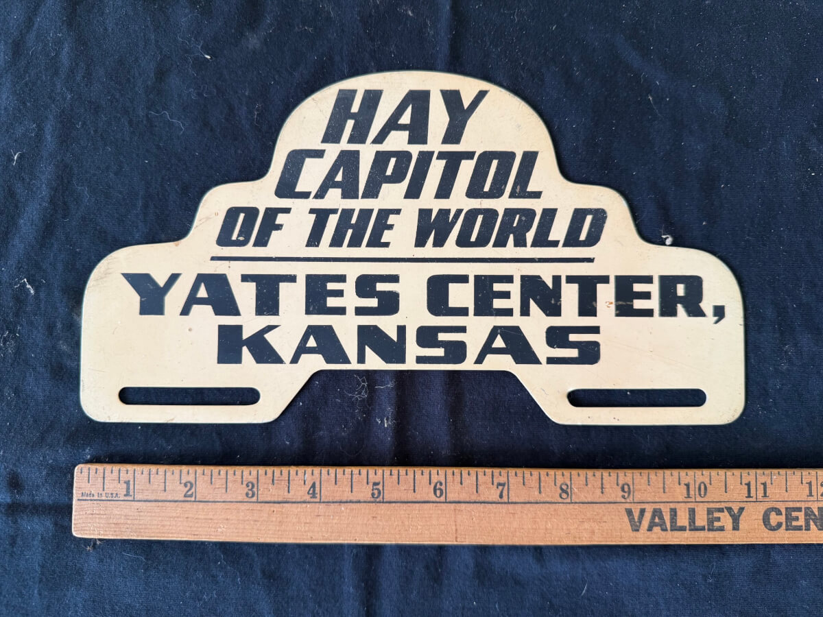| 12 | Hay Capitol Yates Center Kansas License Plate Topper Aluminum |