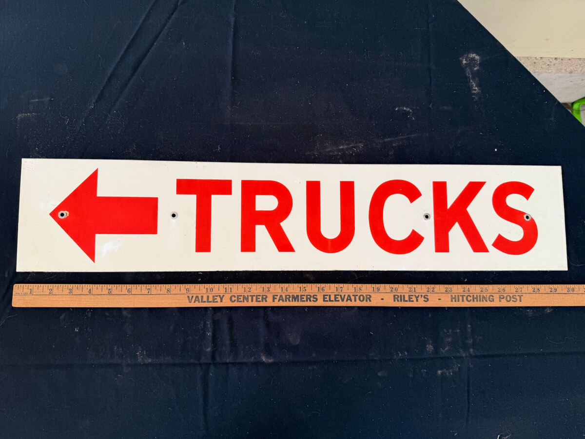 | 18 | Porcelain Trucks Directional Sign 30″x6″ |