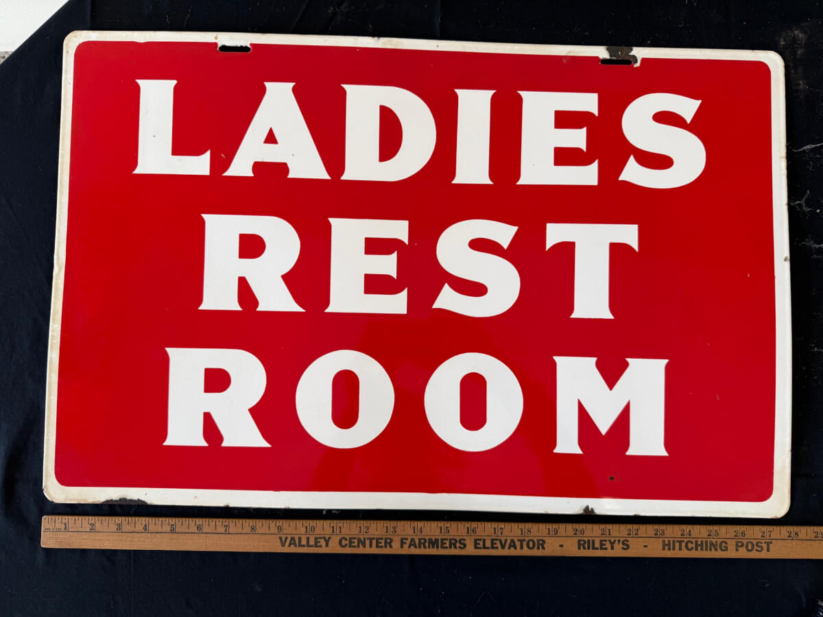 | 21 | Double Sided Ladies Restroom Sign Porcelain 28″x18″ |