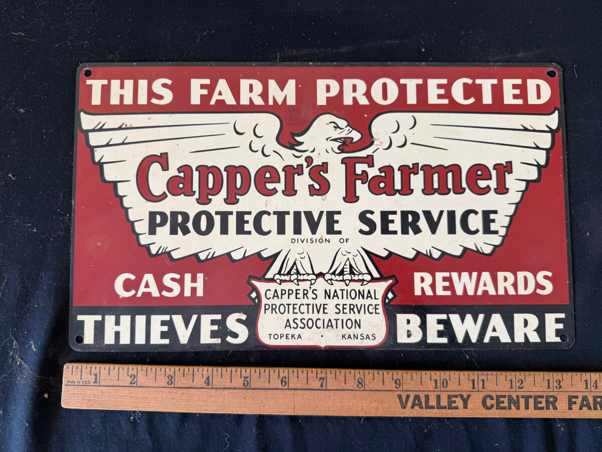 | 31 | Capper’s National Protective Service Association Topeka Kansas Tin Tacker 13.75″x7″ |