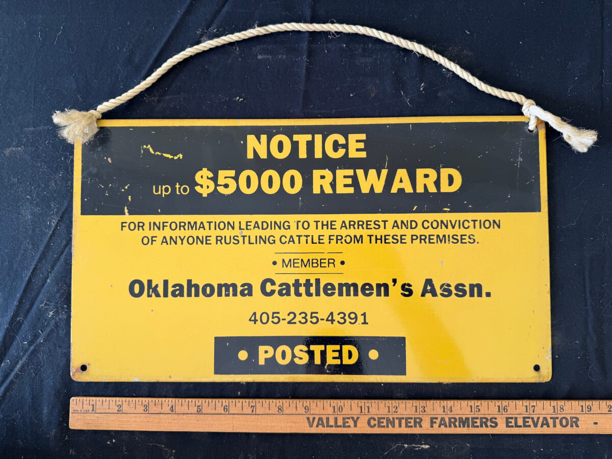 | 34 | Oklahoma Cattlemans Association Reward Sign Metal 18″x10″ |