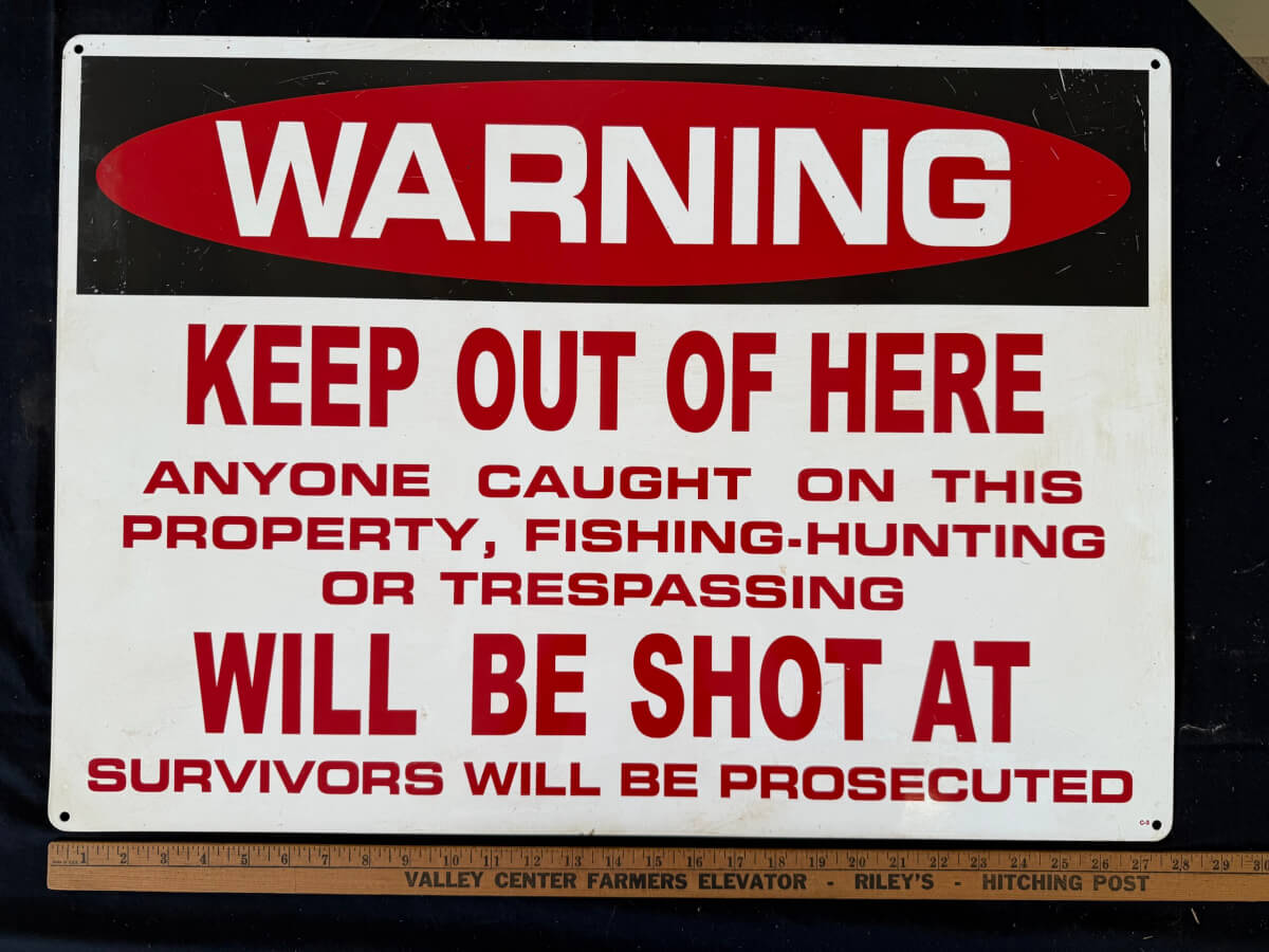 | 39 | Double Sided Warning Keep Out of Here Metal 28″x20″ |