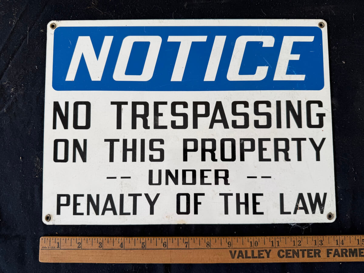 | 7 | No Trespassing Sign Heavy Metal 18×12″ |