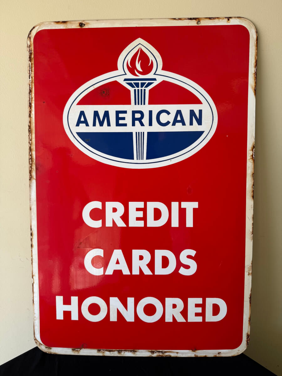| 65 | Double Sided Porcelain American Credit Cards Honored Sign 24″x36″ |