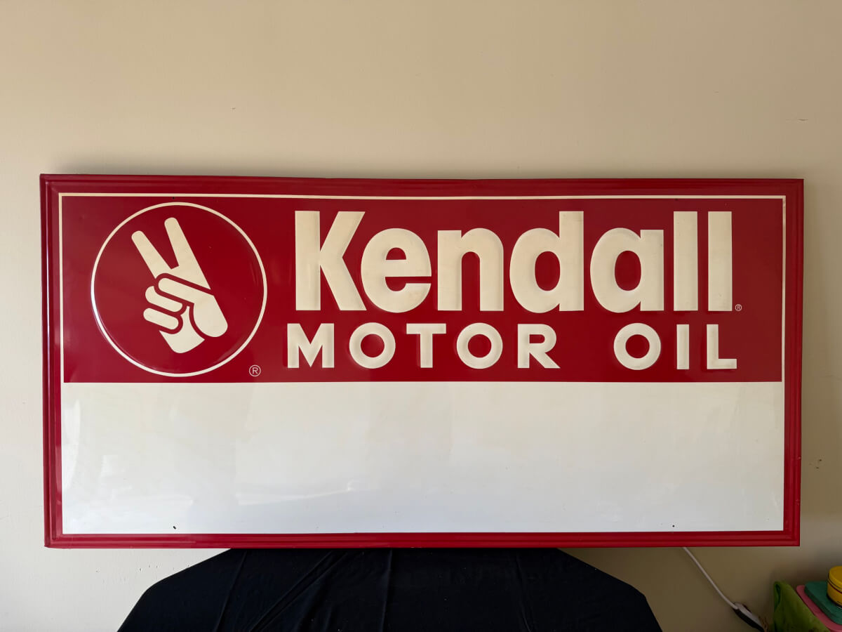 | 8 | Kendall Motor Oil Metal Sign on Wood Frame 70.5″x34.5″ NOS |