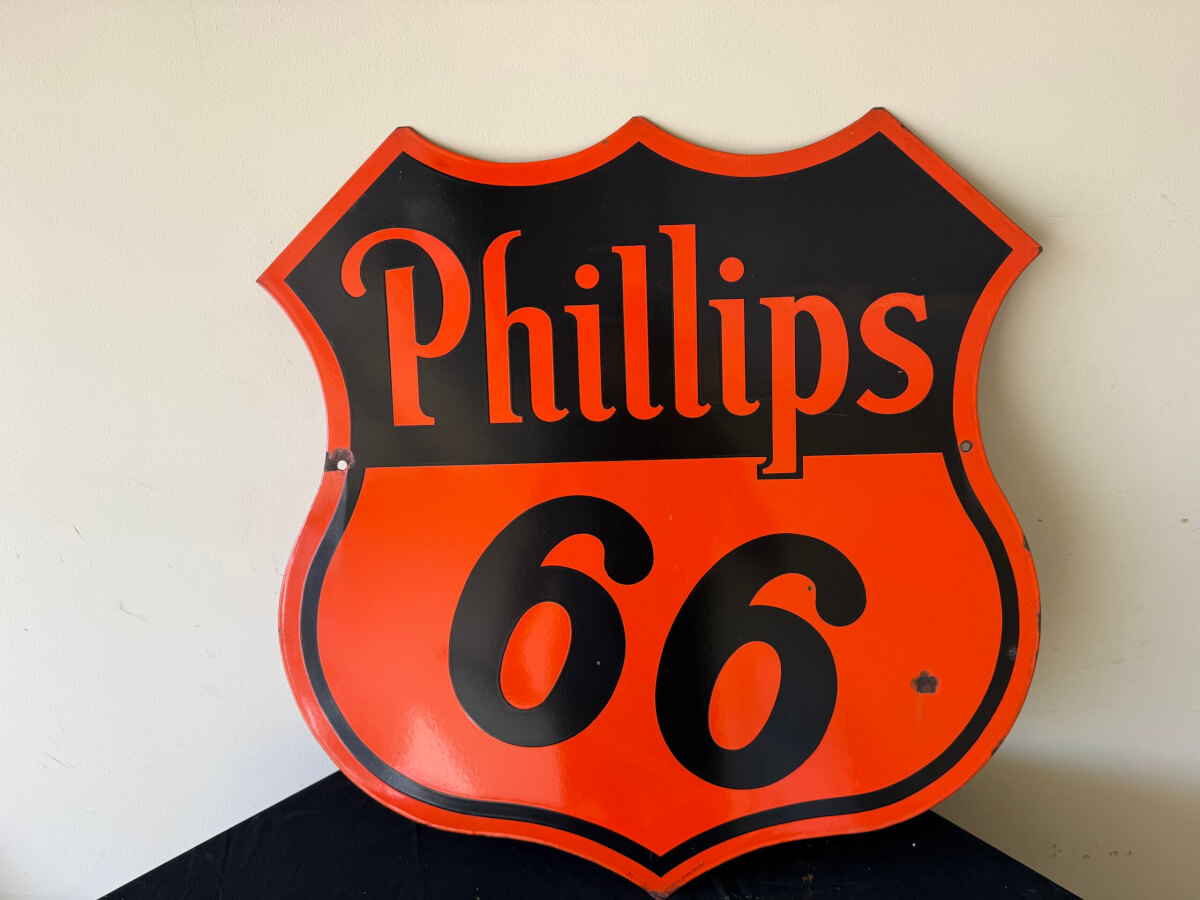 | 81 | Phillips 66 July 1940 Veribrite Chicago 29″x30″ Double Sided Porcelain Sign |