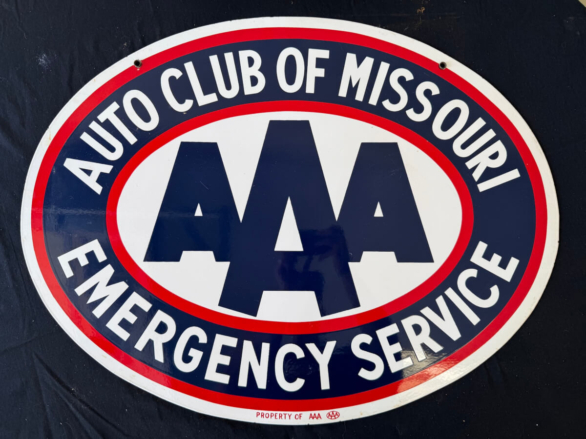 | 82 | AAA Auto Club of Missouri Emergency Service 30″ Wide Double Sided Porcelain Sign |