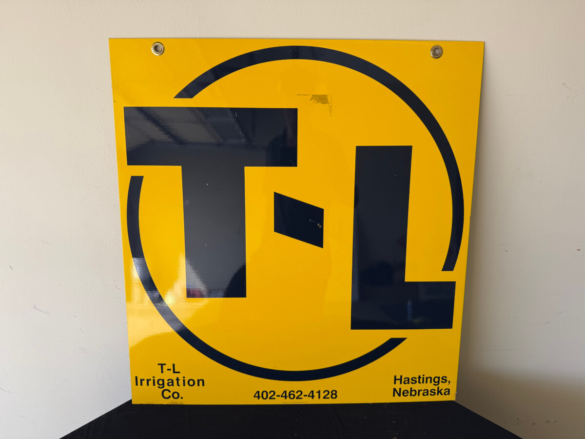 | 83 | T-L Irrigation Company Hastings Nebraska 27″x28.5″ Double Sided Heavy Metal Sign |