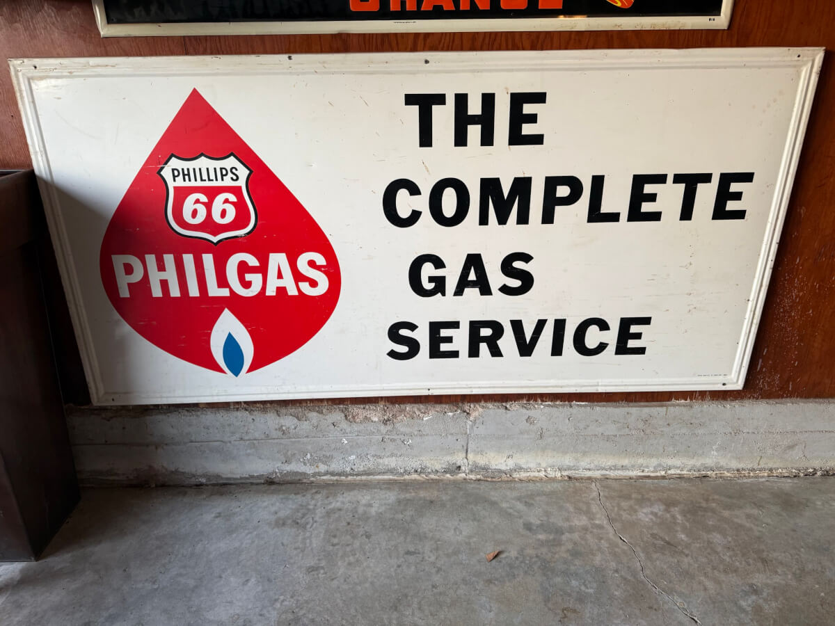 | 99a | Phillips 66 Philgas Metal Sign on Wood Frame 70″x34″ |