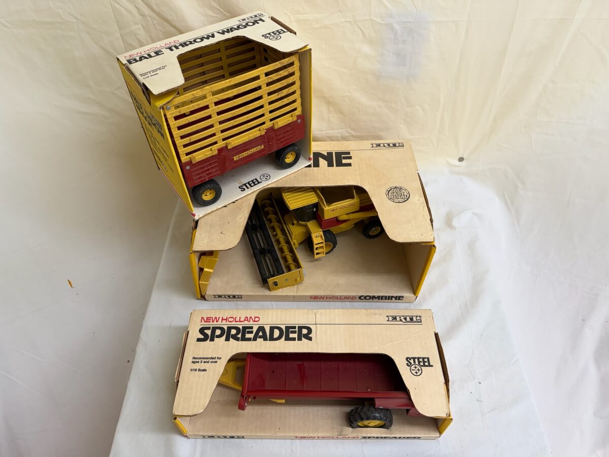 | 99i | New Holland Combine Spreader and Bale Wagon Ertl Toys |