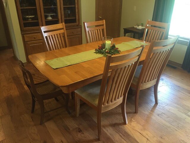 Oak Dining Room Table with Leaves & 5 Chairs