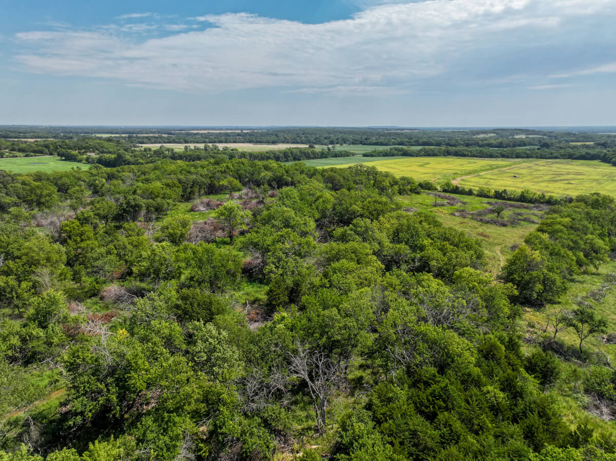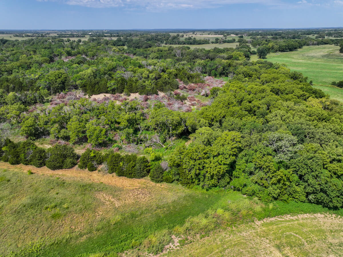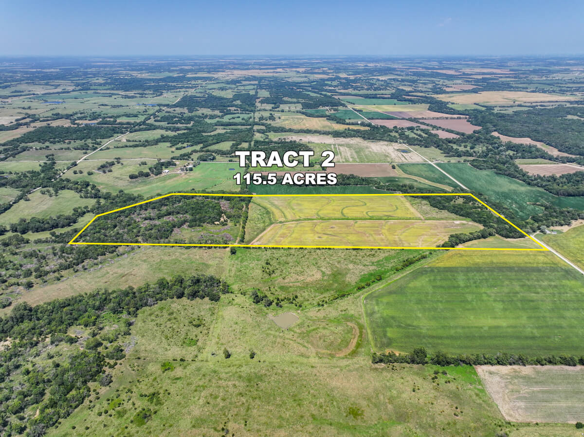 TRACT 2: 115.5 acres northwest of Cherryvale in Montgomery County, Kansas. This tract features a strong mix of tillable farm ground and heavy timber with mature trees along the west side. A wet draw from Drum Creek crosses the northeast corner, providing additional cover and habitat. Some pasture is also included. Outstanding whitetail deer hunting with deer movement throughout the property. An old rock fence stretches over the western hill of this tract adding a unique feature to the hilltop. This tract also includes 3 producing oil wells (set up with solar) for added income potential.