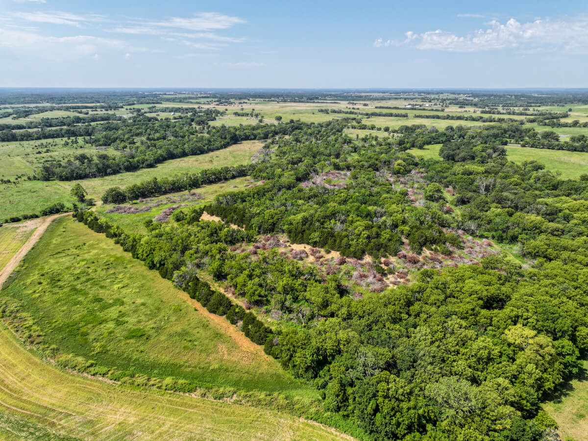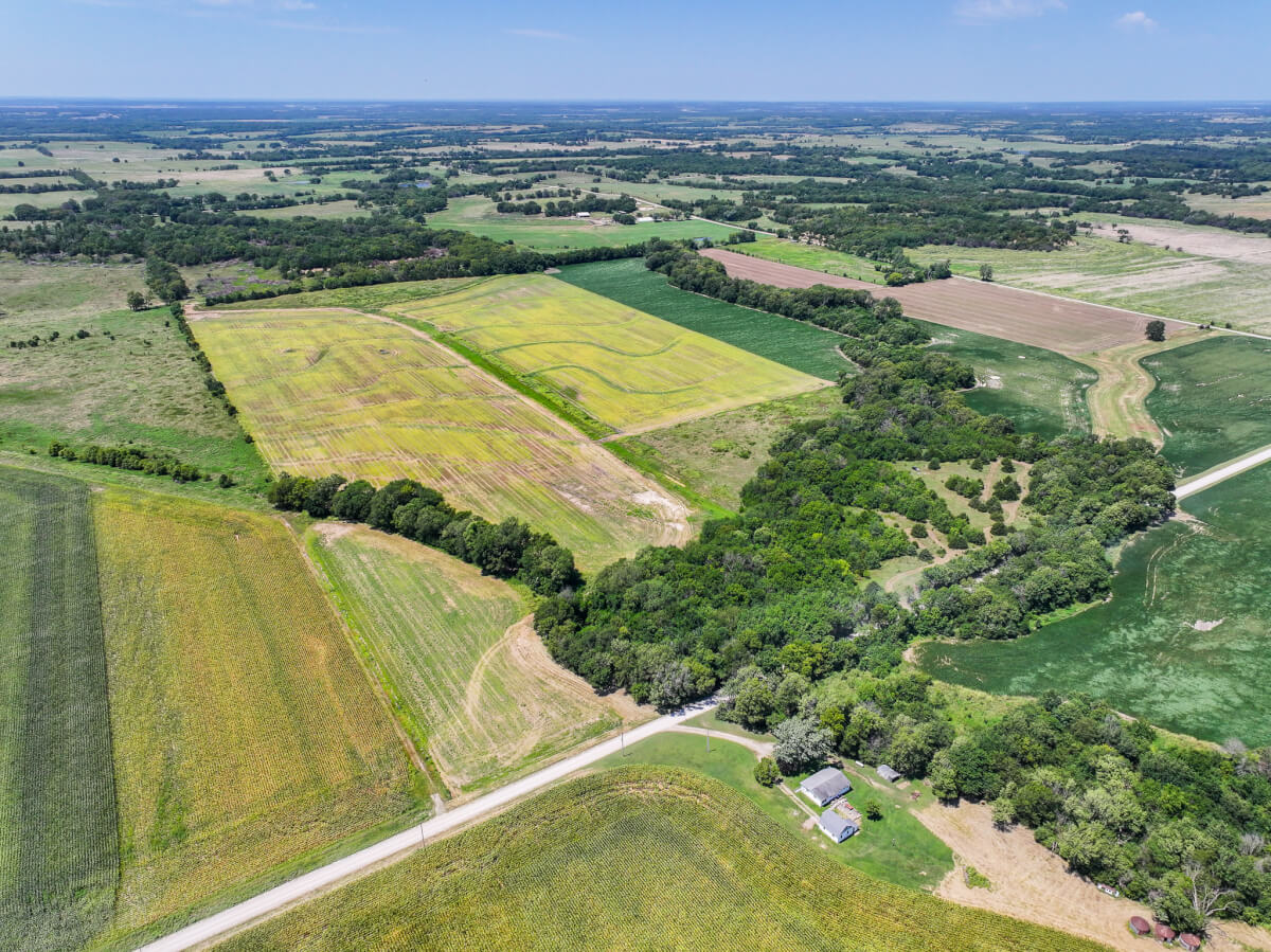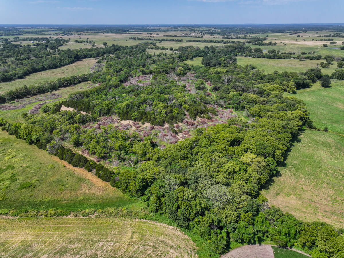 TRACT 2: 115.5 acres northwest of Cherryvale in Montgomery County, Kansas. This tract features a strong mix of tillable farm ground and heavy timber with mature trees along the west side. A wet draw from Drum Creek crosses the northeast corner, providing additional cover and habitat. Some pasture is also included. Outstanding whitetail deer hunting with deer movement throughout the property. An old rock fence stretches over the western hill of this tract adding a unique feature to the hilltop. This tract also includes 3 producing oil wells (set up with solar) for added income potential.
