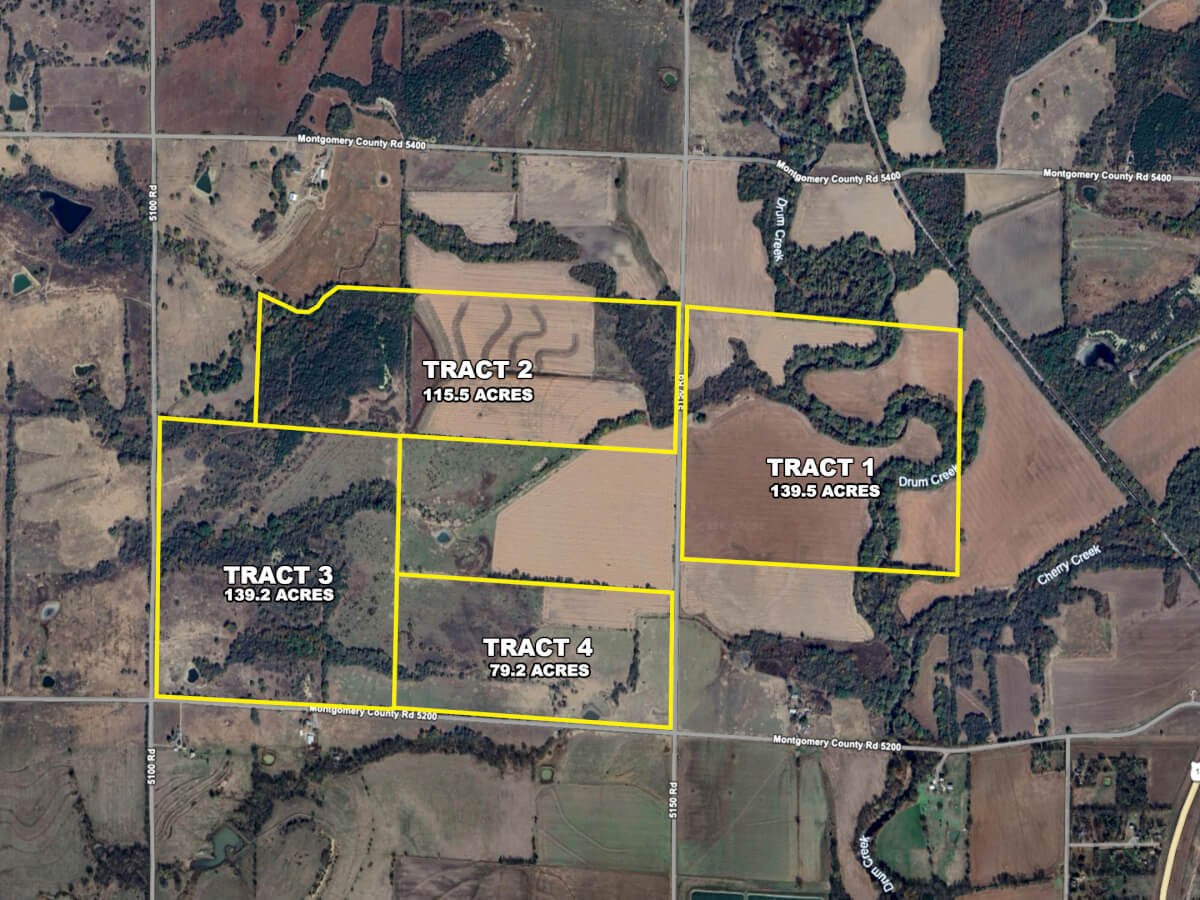 MANNER OF AUCTION: These Tracts will sell individually and in numerical order. Tract 2 will not start ending until 5 minutes after Tract 1, and Tracts 3 and 4 will not start ending until 5 minutes after the prior tract.
