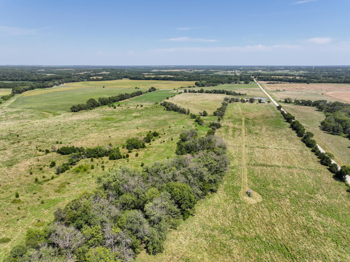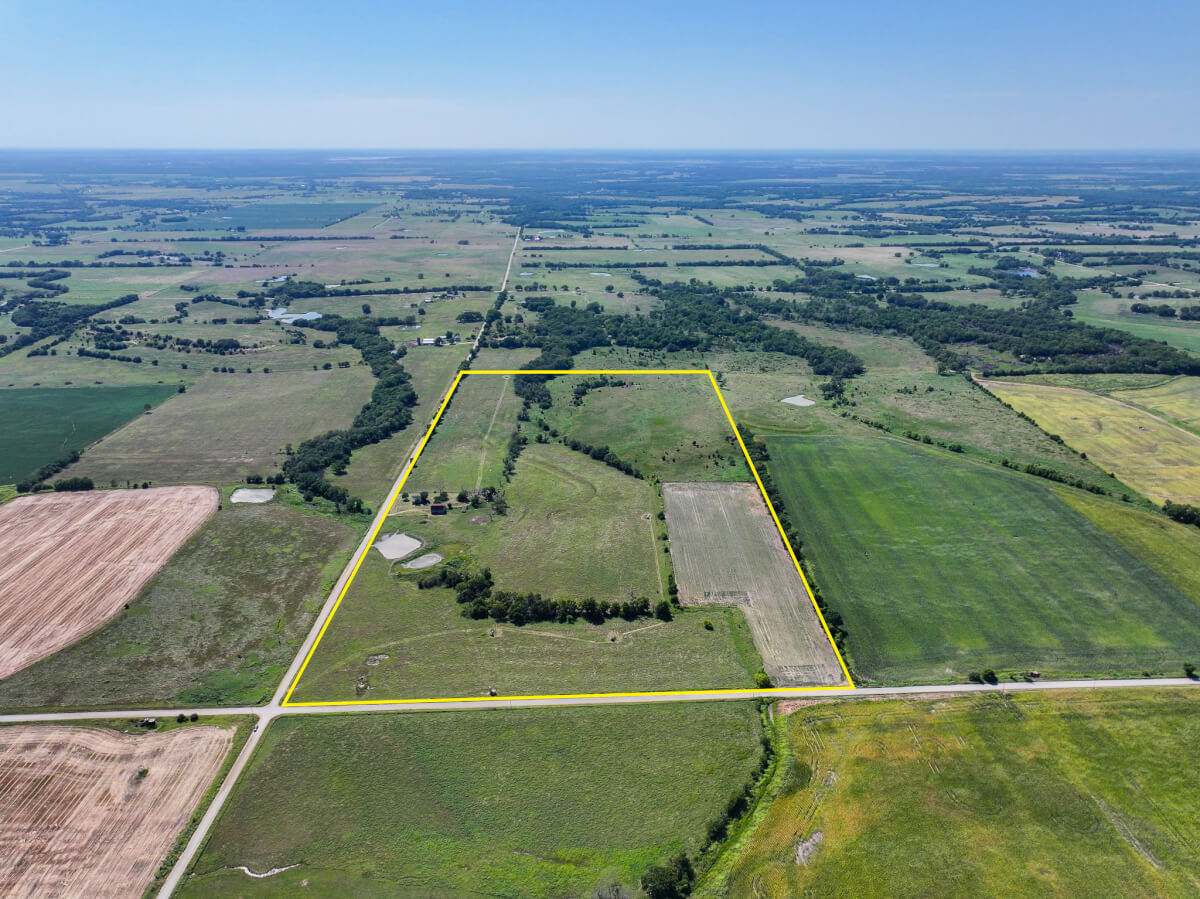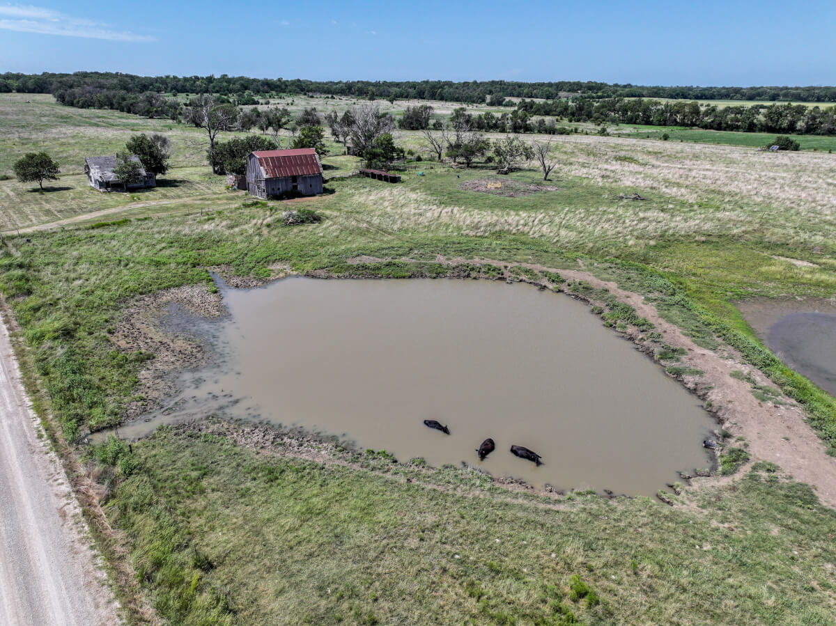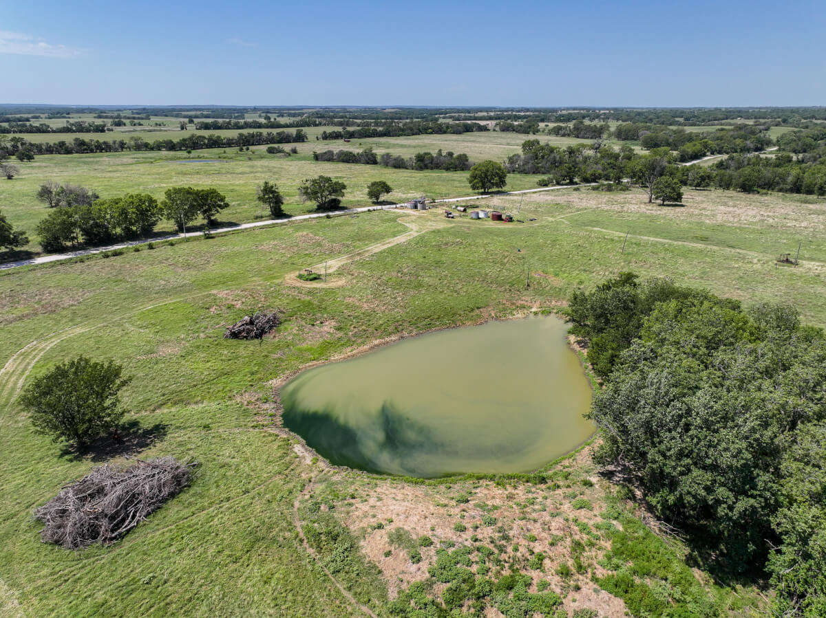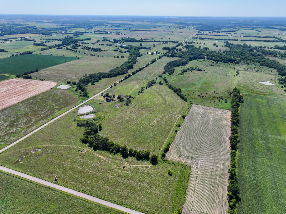 TRACT 4: 79.2 acres northwest of Cherryvale in Montgomery County, Kansas. This tract is made up primarily of pasture with a balance of tillable farm ground and a pond for livestock and wildlife. An old homestead site remains on the property along with a barn and outbuildings, offering character and potential for restoration or future improvements. The land also includes 4 oil wells (set up with solar), providing income opportunities. This tract is well-suited for building a home, running cattle, or continuing crop production. The mix of grazing, tillable acres, and recreational appeal makes this a highly versatile tract with long-term potential.