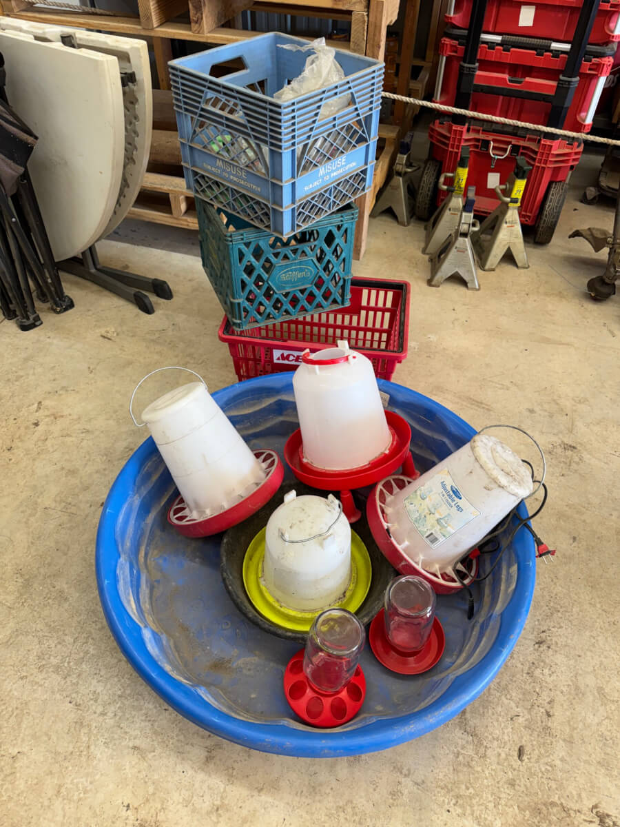 | 48 | Crates, Wading Pools, and Large number of Chicken Feeders and Waterers |