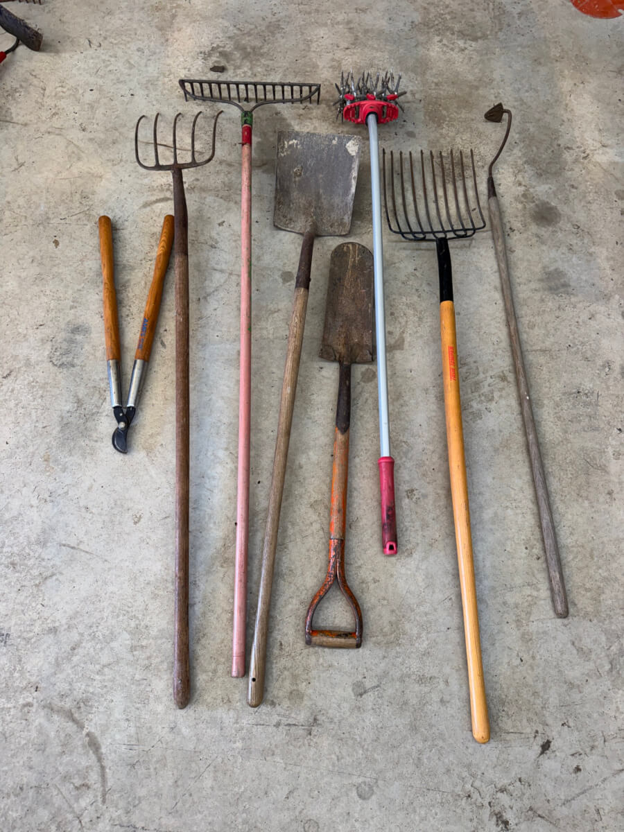 | 80 | Pitch Forks, Shovel, Hand Aerator- Assorted Yard Tools |